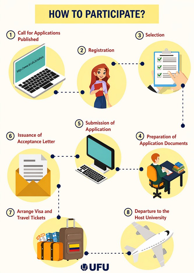 - Enrollment at Universidade Federal de Uberlândia (UFU) in the curricular component “international mobility” during the mobility period.